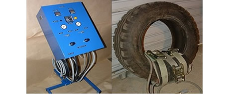 Los elementos de esta maquina se adaptan perfectamente al contorno del neumatico ,gracias a un conjunto de calor y presión regulado y compuesto de : 4 mantas thermicas flexibles, 4 membranas hinchables flexibles, 2 conjuntos de calce interior (sacos de compensación para rellenar con arena fina y seca y elementos cilindricos de plastico), 2 pantallas thermicas exteriores y 2 juegos de 3 o 5 cinchas , según la categoria del neumatico.